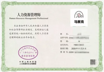 人力资源管理师证书样本